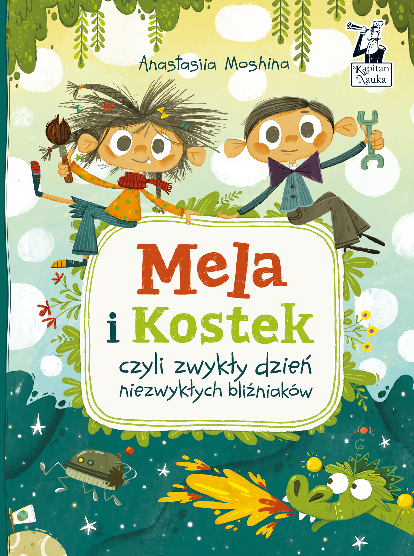 Mela i Kostek czyli zwykły dzień niezwykłych bliźniaków z serii Kapitan Nauka to przepiękna książka, pomyślana jako silent book. Na każdej rozkładówce jest jedna scena z dnia, a także polecenia aktywizujące i pomagające w opowiadaniu historii. To nie tylko literackie wyzwanie, ale także wspaniała zabawa rozwijająca wyobraźnię, logiczne myślenie, kompetencje językowe, spostrzegawczość, koncentrację i umiejętność tworzenia historii.