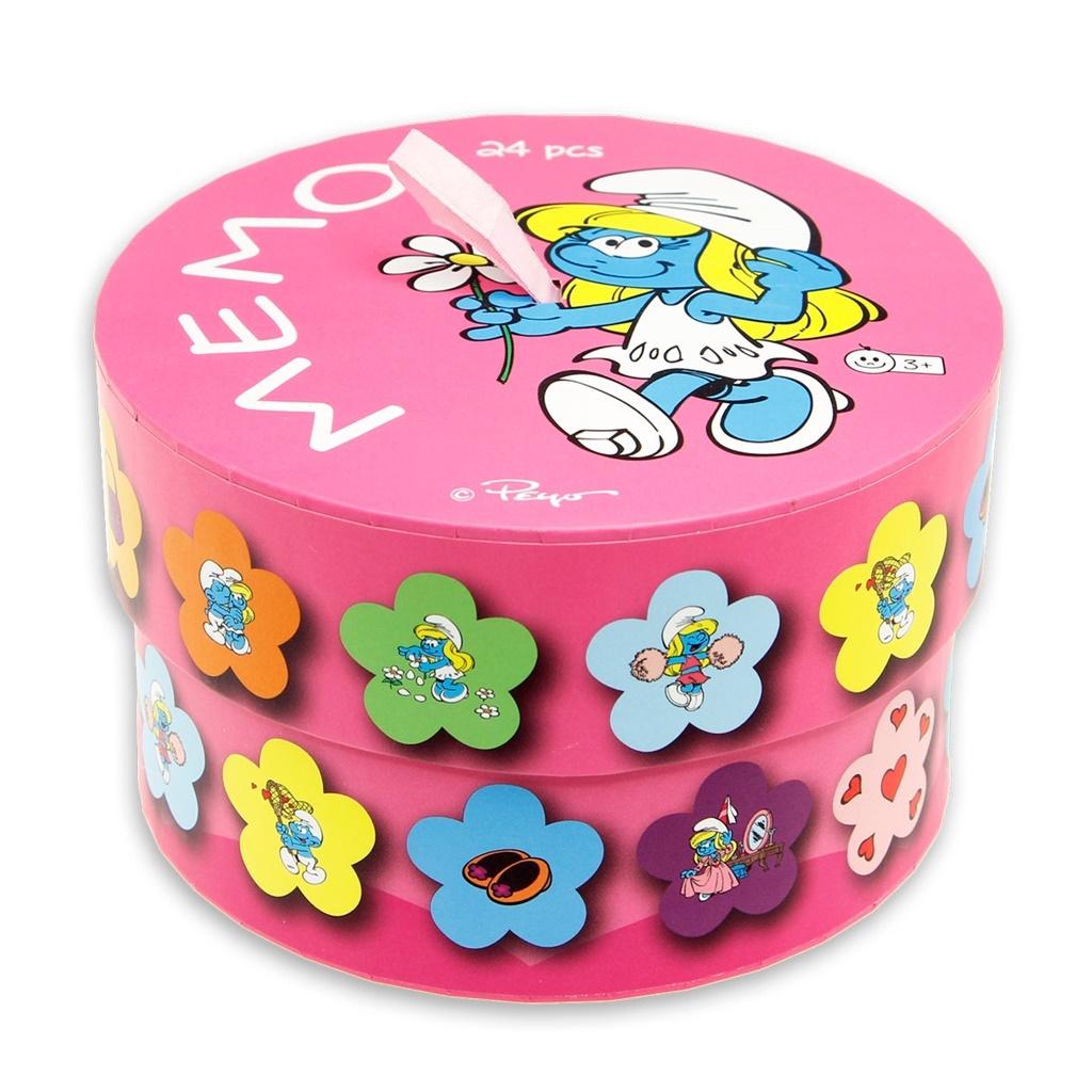 Jak dziecko może ćwiczyć swoją pamięć? Najlepiej w formie zabawy. Oto klasyczna gra pamięciowa, z uroczymi kartonikami w kształcie kwiatków, na których umieszczono bajeczne motywy z Wioski Smerfów, co z pewnością wzbudzi entuzjazm u najmłodszych. Gra polega na odkrywaniu dwóch obrazków i znajdowaniu par. Jeśli są takie same, gracz zabiera je z pola gry. Ma również dodatkowy ruch. Jeśli nie uda się odnaleźć pary, to obrazki się zakrywa i próbuje kolejna osoba. Gra toczy się do zebrania wszystkich elementów. Wygrywa osoba z największą liczbą odnalezionych par.
