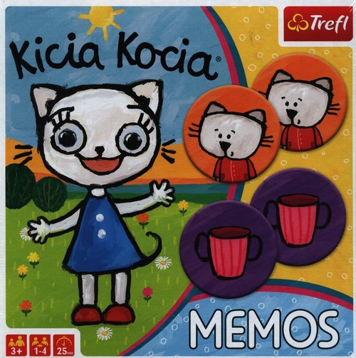 Memos to popularna gra ćwicząca pamięć i spostrzegawczość, która podbiła serca graczy na całym świecie. Tym razem do gry zaprasza Kicia Kocia i jej przyjaciele. Na kartonikach znajdziesz postacie uwielbianej przez dzieci serii książeczek Kicia Kocia. Odkrywaj. łącz w pary takie same ilustracje i baw się razem z Kicią Kocią! Zawartość opakowania: 36 kartoników Wiek: 3+ Liczba graczy: 1-4 Czas: 25+