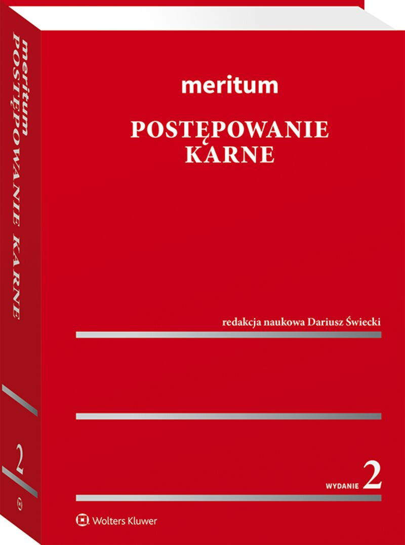 „MERITUM Postępowanie karne”, podobnie jak wszystkie publikacje tej serii wydawniczej, ma charakter ściśle praktyczny. Konstrukcja opracowania odzwierciedla układ materii w Kodeksie postępowania karnego. Sposób jej prezentacji umożliwia czytelnikowi wygodne korzystanie, zawiera bowiem liczne przykłady, schematy, tabele, a materiał jest podzielony na stosunkowo niewielkie fragmenty opisujące poszczególne instytucje. System numerów bocznych, do którego odwołują się hasła szczegółowego indeksu rzeczowego, pomaga w szybkim odnajdywaniu interesujących zagadnień. Wprawdzie publikacja nie koncentruje się na dyskusjach doktrynalnych, to jednak w sytuacjach szczególnych przedstawiane są stanowiska doktryny i judykatury w danej kwestii. Całość jest bogato ilustrowana orzecznictwem. Książka jest dziełem wybitnych prawników praktyków, stąd też pragmatyczne ujęcie tematyki, uwzględniające doświadczenia autorów na sali sądowej. Adresatami publikacji są prawnicy praktycy, aplikanci, studenci wydziałów prawa. Drugie wydanie uwzględnia nowelizację Kodeksu postępowania karnego wprowadzoną ustawą z 7 lipca 2022 r. o zmianie ustawy – Kodeks karny oraz niektórych innych ustaw (Dz.U. poz. 2600), która co do większości przepisów wchodzi w życie 1 października 2023 r. Wprowadza ona do ustawy istotne zmiany dotyczące: • trybu ścigania na wniosek groźby karalnej z art. 190 k.k.; • przekazania sprawy przez Sąd Najwyższy innemu sądowi równorzędnemu, co będzie mogło nastąpić także na wniosek prokuratora (art. 37 k.p.k.); • uproszczenia drogi do wniesienia subsydiarnego aktu oskarżenia (art. 55 i 330 k.p.k.); • zasad zgłaszania zdania odrębnego od orzeczenia i uzasadnienia; • badania źródła pochodzenia przedmiotu poręczenia majątkowego; • zaskarżalności postanowienia sądu odwoławczego wydanego na skutek rozpoznania zażalenia; • dobrowolnego poddania się karze (art. 387 k.p.k.) poprzez wprowadzenie w miejsce „sprzeciwu” warunku „zgody” prokuratora. Uwzględniono także nowelizację Kodeksu postępowania karnego dokonaną ustawą z 13 stycznia 2023 r. o zmianie ustawy – Kodeks postępowania cywilnego oraz niektórych innych ustaw (Dz.U. poz. 289) odnoszącą się m.in. do art. 185a § 1 k.p.k. Zmiana w tym zakresie obowiązuje od 15 sierpnia 2023 r. i odnosi się do nowych zasad rozpoznania wniosku oskarżonego o ponowne przesłuchanie małoletniego świadka, gdy podczas pierwszego przesłuchania oskarżony nie miał obrońcy. Omówiono również zmiany dotyczące reprezentacji procesowej oskarżonego, które wejdą w życie 15 lutego 2024 r. na mocy ustawy z 14 kwietnia 2023 r. o zmianie ustawy – Kodeks postępowania karnego oraz niektórych innych ustaw (Dz.U. poz. 818). Ponadto uwzględniono planowaną nowelizację zawartą w projekcie ustawy o zmianie ustawy – Kodeks postępowania cywilnego, ustawy – Prawo o ustroju sądów powszechnych, ustawy – Kodeks postępowania karnego oraz niektórych innych ustaw (druk sejmowy nr 3216, Sejm IX kadencji), w którym proponuje się m.in. wprowadzenie do procedury karnej nowych instytucji w postaci narady wstępnej i wyroku częściowego.