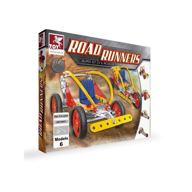 WYŚCIGÓWKI ZESTAW DO BUDOWANIA METALOWYCH KONSTRUKCJI DLA MŁODYCH HOBBISTÓW Zabawka uczy koncentracji, poszerza wyobraźnię, oraz rozwija cechy motoryczne. Zestaw składa się z wielu metalowych części takich jak śrubki, nakładki, kółka, platformy, haczyki oraz kół. Posiada również klucz ampulowy do śrub oraz klucz do nakrętek. Z części można tworzyć sztywne lub ruchome połączenia. Zestaw zawiera wszystkie elementy, które są potrzebne do samodzielnego montażu 32 modeli. Wszystkie elementy są gładkie i łatwo się ze sobą łączą w czasie montażu. Instrukcja zawiera wiele obrazków dzięki którym można najpierw wybrać sobie dowolny model do składania a potem go złożyć. WIEK 8+