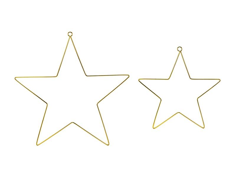 Zawieszki dekoracyjne Gwiazdy wykonane z metalu w kolorze złotym metalizowanym, zestaw zawiera 2 gwiazdy, średnica ok. 20 cm i ok. 28 cm.(1 op. / 2 szt.)