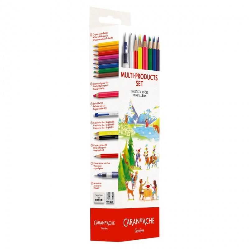 Metalowy piórnik Caran dAche z wyposażeniem Back to School 16 elementów.