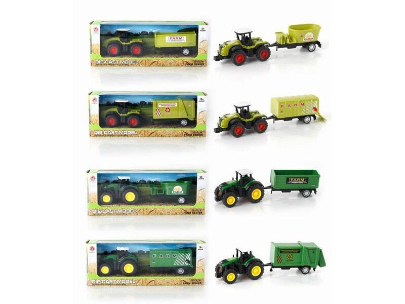 Metalowy traktor + przyczepa mix