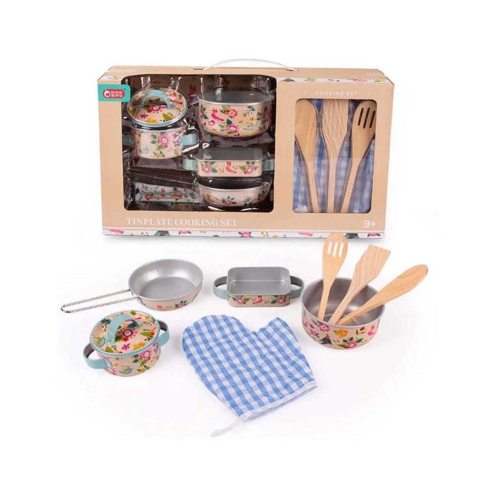 Zestaw naczyń, garnków metalowych dla dzieci z akcesoriami - 9 el.