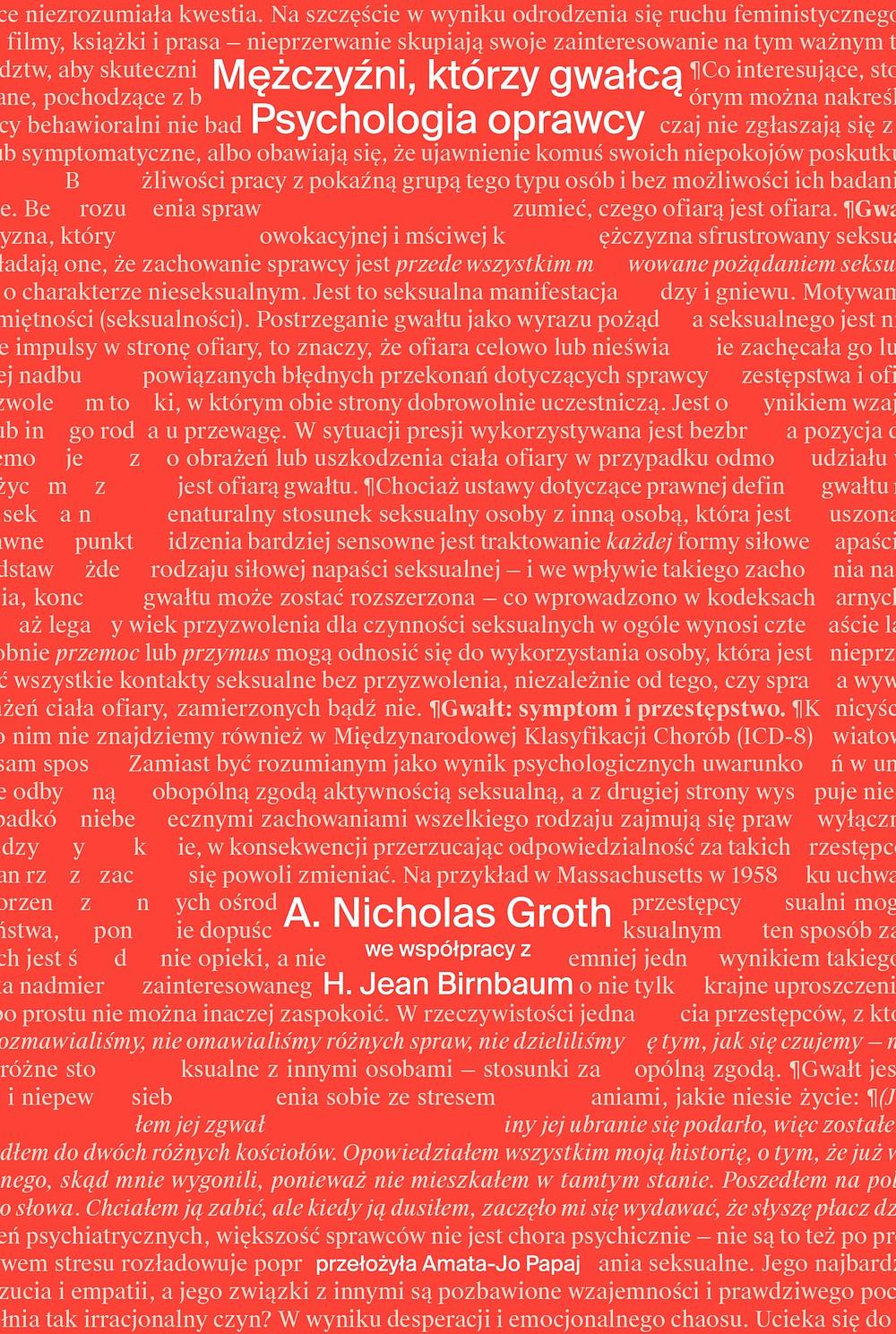 O gwałcie zwykle mówi się dopiero wtedy, gdy do niego dojdzie. A im tragiczniejsze są jego następstwa, tym medialna debata na temat przyczyn i metod zapobiegania coraz bardziej zbacza na grunt utartych mitów i wzajemnych oskarżeń. Tymczasem zbrodnia gwałtu jest jedynie zwieńczeniem długiego procesu, który przygotowuje gwałciciela do popełnienia przestępstwa. Polskie wydanie książki Nicholasa Grotha jest apelem o pomoc do tych, którzy czują się na siłach, by zapobiegać — zanim dojdzie do tragedii. Często uważa się, że kobieta — „gdyby naprawdę chciała” — mogłaby zapobiec napaści. Jednak wbrew obiegowym opiniom nie ma jednej skutecznej metody obrony przed gwałtem. Różne motywy kierują różnymi sprawcami i to, co odstraszy jednego napastnika, pobudzi drugiego. Na przykład opór fizyczny czasem może zniechęcić, ale w innym wypadku wywoła podniecenie. Jeśli ofiara zacznie krzyczeć, jeden napastnik ucieknie, a inny — by ją uciszyć — zacznie ją dusić. W odniesieniu do sprawcy, jego ofiary i przestępstwa utrzymuje się wiele innych nieprawdziwych wyobrażeń i stereotypów. Gwałciciel jest często postrzegany jako mężczyzna sfrustrowany seksualnie, reagujący pod presją skumulowanych potrzeb lub jako oszalały seksoholik, tłumiący w sobie nienasycone i perwersyjne pragnienia. Te błędne przekonania zakładają, że gwałt jest ukierunkowany wyłącznie na zaspokojenie seksualne. Jednakże gwałt jest pseudoseksualną manifestacją władzy i gniewu , a motywami dla napaści są odwet i kompensacja. Niestety postrzeganie gwałtu jako wyrazu pożądania seksualnego prowadzi do społecznego przeniesienia odpowiedzialności z przestępcy na ofiarę, co jest nie tylko nieprecyzyjne, lecz przede wszystkim skrajnie krzywdzące i niebezpieczne. Skoro napastnik jest pobudzony seksualnie i kieruje swoje impulsy w stronę ofiary, to znaczy, że ofiara celowo lub nieświadomie zachęcała go lub rozbudzała w nim pożądanie poprzez swoje zachowanie, styl ubierania się lub jakiś inny aspekt. To błędne, ale popularne przekonanie tworzy fundament dla całej nadbudowy powiązanych błędnych przekonań dotyczących sprawcy, przestępstwa i ofiary. Podobnie nieprawdziwe mity narosły wokół innych aspektów pseudoseksualnej brutalności — molestowania dzieci, gwałtów zbiorowych, gwałtów na osobach starszych, wpływu pornografii, alkoholu i narkotyków, częstości impotencji, zachowań homoseksualnych, a także kobiet dopuszczających się gwałtów. Na kartach swojej książki A. Nicholas Groth we współpracy z H. Jean Brinbaum prezentuje nam wyniki ich tytaniczne pracy badawczej, mierzącej się z tymi oraz innymi błędnymi wyobrażeniami na temat gwałcicieli, dostarczając szeregu interesujących wniosków oraz użytecznych interpretacji. Główna myśl książki mówi o tym, iż gwałt jest zawsze objawem jakiejś dysfunkcji psychologicznej , czy to chwilowej i przejściowej, czy też chronicznej i powtarzającej się. Jest to zazwyczaj akt desperacji, który wynika z niezdolności jednostki słabej emocjonalnie i niepewnej siebie do radzenia sobie ze stresem i wymaganiami, jakie niesie życie. Gwałciciel ucieka się do gwałtu jako ostatniej, desperackiej próby poradzenia sobie ze stresem, który — jak czuje — w przeciwnym razie go zniszczy; zazwyczaj obawia się, że straci kontrolę i oszaleje. Konsekwencje jego zachowania nie mają wtedy żadnego znaczenia. Dlatego nie powstrzymają go względy logiczne, jak wizja kary, hańby dla rodziny, cierpienia, które zada ofierze. Książka „Mężczyźni, którzy gwałcą” stanowi podstawową lekturę dla każdego, kto zetknął się problematyką gwałtu. Zawarte w niej tezy oparte są na 15-letnim, bogatym doświadczeniu klinicznym autorów i badaniach przeprowadzonych z ponad 500 przestępcami seksualnymi. W sposób językowo przystępny analizuje psychologiczne i emocjonalne czynniki prowadzące do przemocy seksualnej oraz dostarcza ram do zrozumienia historii, stylów życia i motywacji gwałcicieli. A przede wszystkim ukazuje człowieka w jednej z jego najstraszniejszych postaci – sięga do najmroczniejszych rudymentów jego istoty. Uwaga! Książka zawiera drastyczne, brutalne opisy realnych wydarzeń. Osoby wrażliwe mogą doświadczyć bardzo nieprzyjemnych emocji podczas lektury. Prosimy o rozważne podejście do tej kluczowej dla badań klinicznych, lecz trudnej literatury naukowej.