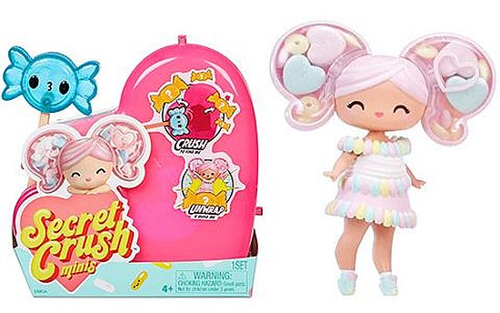 Zmiażdż najsłodszą niespodziankę z Secret Crush. Każda lalka jest dostarczana w pięknym opakowaniu w kształcie serca, które można zmiażdżyć, aby uzyskać wyjątkowe wrażenia z rozpakowywania. Odkryj uroczą lalkę o słodkim motywie z tajemnicami ukrytymi w przegródkach z niespodziankami. Rozwiń każdy sekret, aby znaleźć elementy do zbudowania minilaleczki — najlepszej przyjaciółki Twojej dużej lalki. Wypełnij włosy minilaleczki koralikami-niespodziankami. Możesz nawet użyć koralików do wykonania własnej biżuterii za pomocą dołączonego elastycznego sznurka. Zawiera młotek z motywem cukierków.