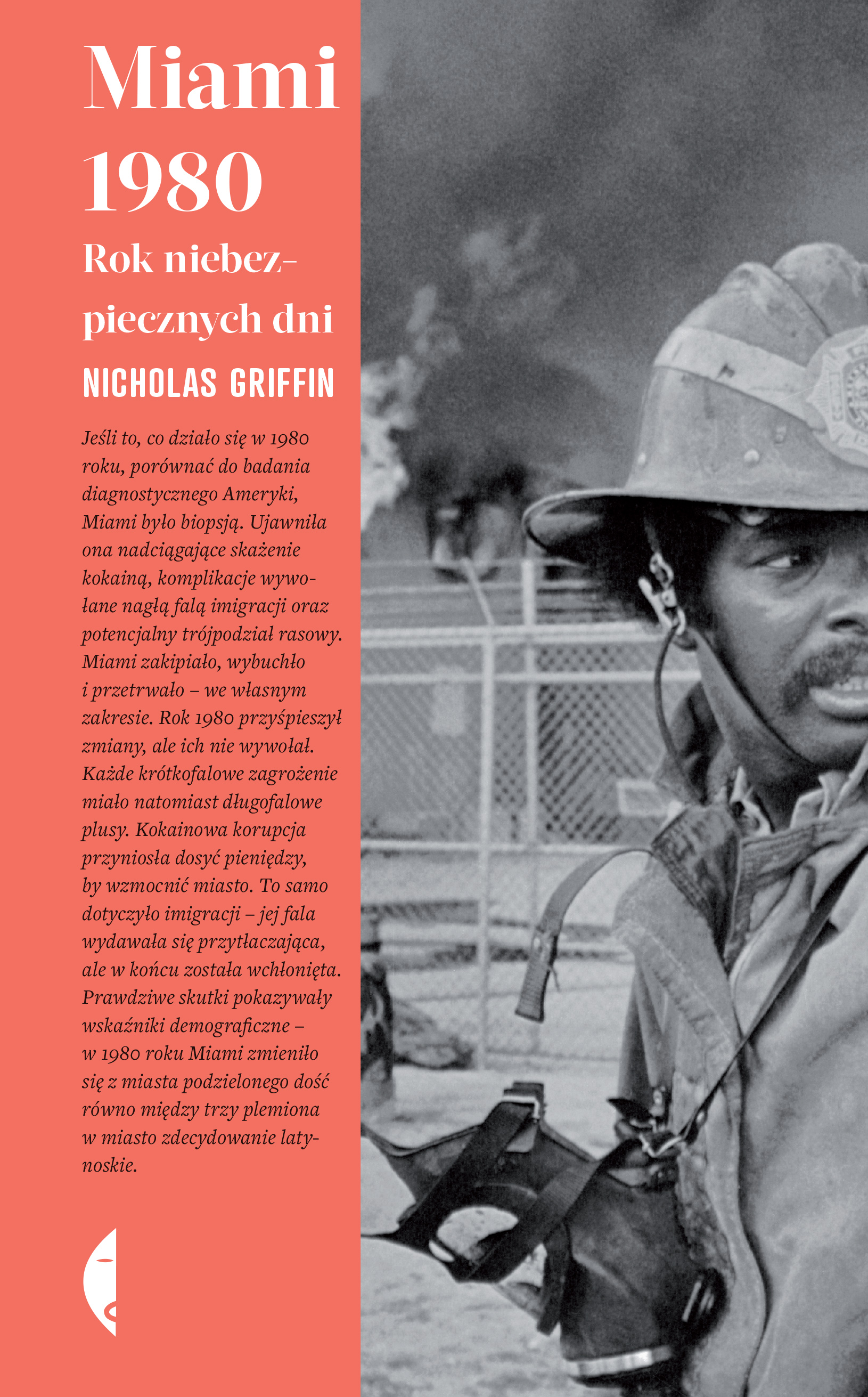 Miami. Odcisk na palcu Florydy, latarnia morska dla ofiar kubańskiego ucisku, nieatrakcyjny skrawek Ameryki. Jak to możliwe, że z miasta skazanego na porażkę stało się jednym z najważniejszych punktów na mapie USA i bramą łączącą uporządkowaną Północ z pogardzanym Południem? Choć problemy wzbierały już w latach siedemdziesiątych, to właśnie w 1980 roku przez miasto przetoczyła się ich kulminacyjna fala. Napływ tysięcy imigrantów z Kuby, kolumbijscy narcos przemycający przez Miami tony kokainy, oszuści piorący miliony dolarów, zbuntowani czarni rozgoryczeni ubóstwem i nieustającą agresją policji. Lokalne skandale, zamieszki rasowe i kryzys migracyjny – w ciągu jednego roku Miami przeżyło upokarzający upadek, z którego musiało się podnieść bez pomocy z zewnątrz. Koniec 1980 roku przyniósł jednak nadzieję. Trudne doświadczenia ostatnich dwunastu miesięcy zmusiły wszystkie departamenty policji oraz włodarzy miasta do wprowadzenia gruntownych zmian, a zmęczonych przemocą mieszkańców – do integracji. I to właśnie z traumy 1980 roku narodziło się współczesne Miami. Nicholas Griffin przez siedem lat pracował nad materiałem dotyczącym tego roku, kiedy ulicami Miami rządziły chaos i bezprawie. Jego książkato skrupulatna i doskonale udokumentowana kronika burzliwego przełomu w historii miasta i hołd złożony tym, którzy zrobili wszystko, by rok niebezpiecznych dni już nigdy się nie powtórzył. „To nie jest książka tylko o Miami. To próbka tego, co rozsadza Stany od środka. Griffin pisze o zamieszkach na tle rasowym, brutalności policji wobec czarnych i wykańczającym kraj biznesie narkotykowym. Wszystko doprawione opisem burzliwych wydarzeń, którymi Ameryka żyła w 1980 roku: czytamy o przegranej Jimmy’ego Cartera w walce o reelekcję, rekordowej inflacji i szaleńczej polityce Fidela Castro wysyłającego ku wybrzeżom Florydy tysiące uchodźców. To fascynująca i wielowątkowa lektura.” Marta Zdzieborska