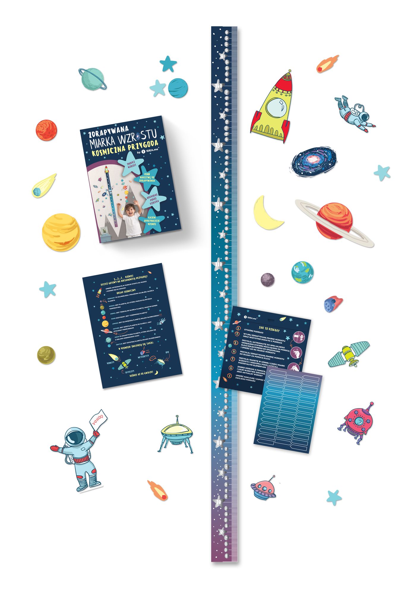 Zdrapywana Miarka Wzrostu „KOSMICZNA PRZYGODA” to rewolucyjne podejście do tematu miarki wzrostu dla dzieci. To nie tylko przydatny gadżet, ale również piękna ozdoba dziecięcego pokoju. Rezultatem będzie piękna i kolorowa historia dorastania dziecka, która ozdobi nowoczesne wnętrze.