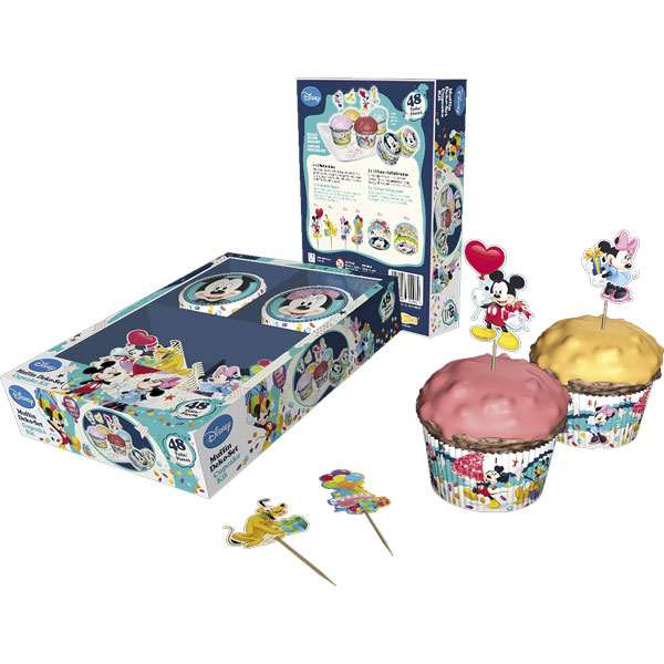 Z 48 cz. zestawem na muffiny Mickey & Minnie wyczarujecie Państwo perfekcyjne muffiny. Jest to fantastyczna i błyskawiczna dekoracja muffinów! A przy tym mnóstwo dobrej zabawy i satysfakcji! Muffiny w fantastycznych papilotkach, z gwiazdorskimi pickerami... Hit przyjęcia gotowy!