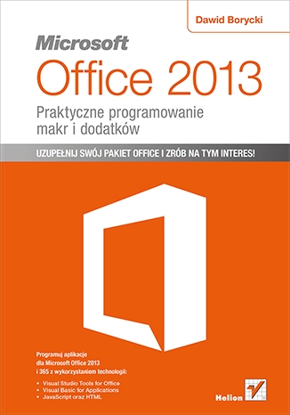 Uzupełnij swój pakiet Office i zrób na tym interes!Programuj aplikacje dla Microsoft Office 2013 i 365 z wykorzystaniem technologii:Visual Studio Tools for OfficeVisual Basic for ApplicationsJavaScript oraz HTMLMicrosoft Office to niezwykle elastyczny i przy tym bardzo popularny pakiet biurowy. Dużej części jego użytkowników wystarczają podstawowe możliwości pakietu. Jednak istnieje spora grupa osób chcących mieć dostęp do jeszcze bardziej zaawansowanych narzędzi bez konieczności rezygnowania z uniwersalnej wersji Office...a. Dla nich właśnie powstają niewielkie aplikacje-dodatki, które można kupić w sklepach internetowych. Jeśli chcesz dowiedzieć się, jak projektować takie przydatne programy, trafiłeś na idealną książkę.W tej publikacji znajdziesz omówienie sposobów tworzenia makr, dodatków i aplikacji dla Microsoft Office 2013 i 365 z wykorzystaniem trzech najpopularniejszych technologii: Visual Studio Tools for Office, Visual Basic for Applications oraz JavaScript Object Model. Każda z nich została opisana na konkretnych przykładach. Pokazano tu sekwencję kroków, które trzeba wykonać, by makropolecenie lub dodatek zaczęły poprawnie działać. Omówiono różne opcje, biblioteki kontrolek, sposoby integracji dodatków z programami Office...a i kwestie publikacji gotowych aplikacji. Rozszerz możliwości swojego pakietu Office!Projekt aplikacji-dodatku VSTOKontrolki Windows Forms w dodatkach VSTOTworzenie tabel, zarządzanie dokumentami i wbudowane okna dialogowe w VSTOKorespondencja seryjna i dostęp do danych z wykorzystaniem technologii ADO.NET Entity FrameworkIntegracja skoroszytów z zewnętrznymi źródłami danychRejestracja, edycja i publikacja makr z wykorzystaniem VBAWykorzystanie VBA do tworzenia wykresów, regresji liniowej oraz korespondencji seryjnejDostęp do wbudowanych funkcji Excela z poziomu VBAProgramowanie makr w Wordzie: tabele i wykresy, zarządzanie dokumentamiSzablon projektu aplikacji dla pakietu Office 2013 i 365 w JavaScript Object ModelProgramowanie widoków i dostęp do zawartości dokumentów w JavaScript Object ModelWykorzystanie danych z serwisów internetowych na przykładzie Google Maps w JavaScript Object ModelNaucz się ulepszać Microsoft Office 2013 i 365!