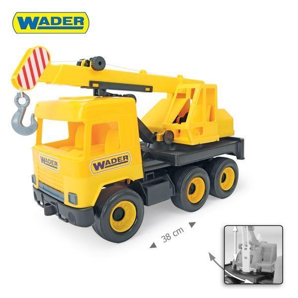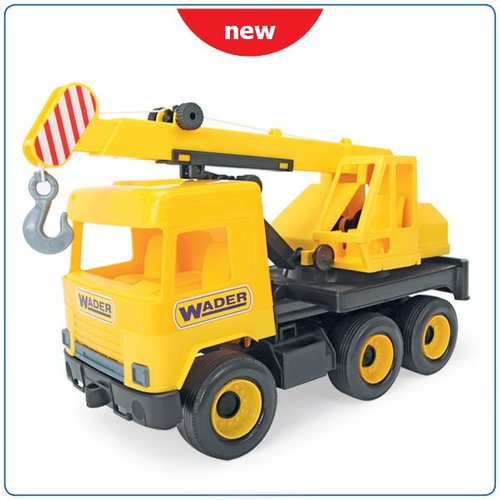Duża (38 cm długości) i bezpieczna zabawka dla dziecka, nadająca się do zabawy zarówno w domu, jak i w piaskownicy. Dźwig bardzo realistycznie odzwierciedla prawdziwy pojazd budowlany. Wyposażony jest w ruchomy wysięgnik oraz opuszczany hak. Całość wykonana jest z lekkiego, ale wytrzymałego tworzywa sztucznego odpornego na warunki atmosferyczne. Produkt chętnie kupowany dzieciom ceniącym sobie wielofunkcyjność zabawek.