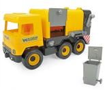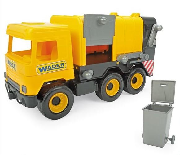 Duża (42 cm długości) i bezpieczna zabawka dla dziecka, nadająca się do zabawy zarówno w domu, jak i w piaskownicy. Pojazd posiada wiele ruchomych elementów, które urozmaicą zabawę np. kontener na śmieci, podnośnik umożliwiający opróżnianie kontenera oraz otwieraną tylną klapę. Całość wykonana jest z lekkiego, ale wytrzymałego tworzywa sztucznego odpornego na warunki atmosferyczne.