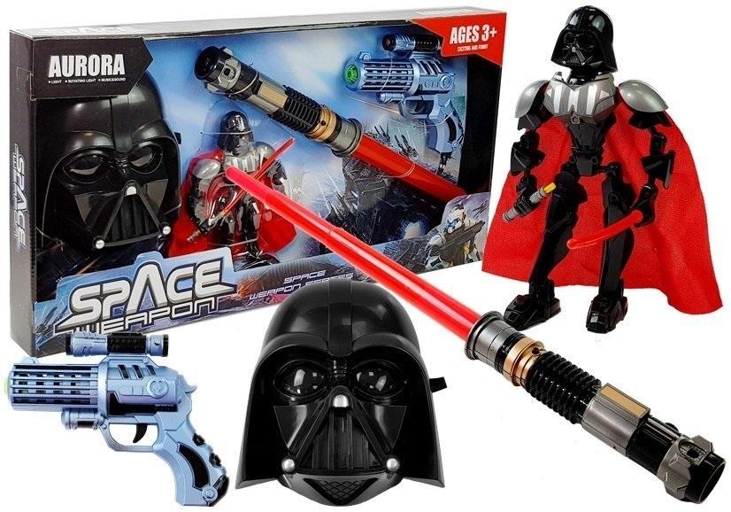 Zestaw broni kosmicznej z mieczem, maską i robotem Przedstawiamy niesamowity zestaw kosmicznej broni, który jest idealnym rekwizytem do stoczenia walki z groźnym wrogiem z odległej planety. Ta niespotykana, oryginalna broń posiada kosmiczne dźwięki i światła, co z pewnością zachęci do zabawy wszystkie dzieciaki. W skład zestawu kosmicznej broni wchodzą: - maska, robot, - pistolet, - miecz świetlny. Kosmiczny środek bojowy składa się z pistoletu oraz miecza teleskopowego. Kolorystyka tych środków obrony składa się z żywych kolorów, połączonych z intensywną czernią . Maska dołączona do zestawu zaprojektowana jest w czarnej kolorystyce,posiada okienka na oczy, dziurki w okolicy ust oraz doczepioną z tyłu gumkę, która sprawi, że podczas zabawy maska będzie pozostawać na właściwym miejscu. Maska posiada efekty świetlne, kiedy przełączymy w środku przycisk "ON" światła w oczach zaczną migać. Miecz świetlny działa po wciśnięciu guziczka znajdującego się w centralnej części uchwytu, a jego wysunięcie jest bardzo proste - wystarczy potrząsnąć nim do przodu, by pomógł zwyciężyć w walce. Pistolet po wciśnięciu spustu również świeci się i wydaje dźwięki, dlatego warto wypróbować zabawkę w ciemnym pomieszczeniu. Prawdziwy zestaw gwiezdnego wojownika nie mógłby istnieć bez walecznego robota z peleryną. Robot posiada ruchome nogi, ręce, głowę. Wszystkie te część zginają się w kilku miejscach w różne strony. Zestaw zasilany jest bateriami 3 x 1.5 V "AA", które nie są dołączone do zestawu. Wszelkie elementy kosmicznego kompletu wykonane są z wysokogatunkowego materiału, czyli plastiku. Zabawka posiada certyfikat CE, zapakowana jest w duże, kartonowe pudełko ozdobione kosmicznym motywem oraz zdjęciem robota - elementy te sprawiają, że jest doskonałym pomysłem na prezent dla chłopca. Wymiary elementów zestawu: - maska: 18 cm x 22 cm, - pistolet: 20 cm x 17 cm. Wymiary opakowania kosmicznej zabawki: - 64 cm x 33 cm x 7 cm