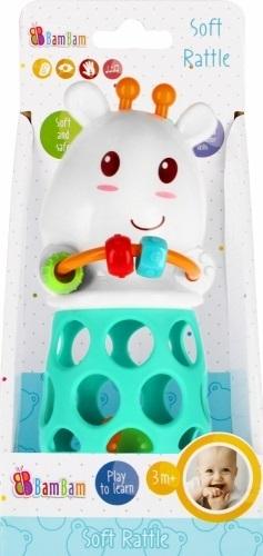 Miękka, Gumowa GRZECHOTKA KRÓWKA  zapewni maluszkowi doskonałą rozrywkę oraz zachęci do aktywności.  Potrząsanie zabawki wyzwala  charakterystyczne dźwięki towarzyszące odbijaniu się kuli o wnętrze zabawki. Poprzez  potrząsanie czy zgniatanie grzechotki dziecko rozwija motorykę i zdolności manualne. Uchwyty z pierścieniami i niezwykle barwnymi koralikami o zróżnicowanej teksturze są doskonałe do nauki chwytania i ćwiczenia zdolności manualnych  małych rączek. Umożliwiają ćwiczenie koordynacji i przenoszenia przedmiotu z rączki do rączki.  Miękki materiał, z jakiego wykonana jest zabawka, z licznymi otworami ułatwia utrzymanie zabawki w małych rączkach. Chroni przed obtarciami paluszki oraz wrażliwe dziąsła. Grzechotka stymuluje rozwój słuchu. Wymiary/waga/baterie: wymiary produktu (szer. x wys.)[cm]: 7x16, wymiary opakowania (dł. x wys. x gł.)[cm]: 10x23x9, waga produktu bez opakowania [kg]: 0,11 kg, waga produktu w opakowaniu [kg]: 0,16 kg, nie wymaga zasilania bateriami. Zabawka przeznaczona dla dzieci w wieku: 3m+. Pakowana w otwarty kartonik.