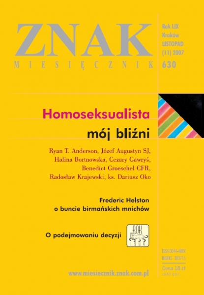 Chcemy wiedzieć, co nas czeka po śmierci. W naszej ciekawości spraw ostatecznych nie powstrzymują nas ostrzeżenia teologów grożących pomieszaniem prawdziwej wiary z czczymi domysłami i fantazmatami. Potrzebujemy stawiać takie pytania, bo pozwalają nam one przybliżyć się do tajemnicy śmierci, jednego z niewielu duchowych problemów, z którymi każdemu z nas prędzej czy później przyjdzie się zmierzyć. W styczniowym „Znaku” proponujemy więc spojrzenie na problematykę śmierci i życia wiecznego z perspektywy teologów (Wacław Hryniewicz, Jacek Salij, Tomasz Węcławski), filozofów (Adam Workowski, Ireneusz Ziemiński) czy wreszcie świadków Ewangelii (Jean Vanier, Donald Nicholl). Mamy nadzieję, że tak wszechstronny ogląd pozwoli uchylić rąbka tej wielkiej tajemnicy naszej wiary. Poza blokiem głównym Andrzej Paszewski pisze „o homoseksualistach jeszcze inaczej” - jest to cenna wypowiedź w dyskusji na temat istoty homoseksualizmu, głos doświadczonego genetyka i biologa. W dziale „Diagnoz” politolog Jarosław Flis dzieli się z nami refleksją po wyborach samorządowych, a w rubryce młodych („Rok 1984”) - wywiad z socjologiem Markiem Szczepańskim, który mówi o patologiach dotykających polską rodzinę.