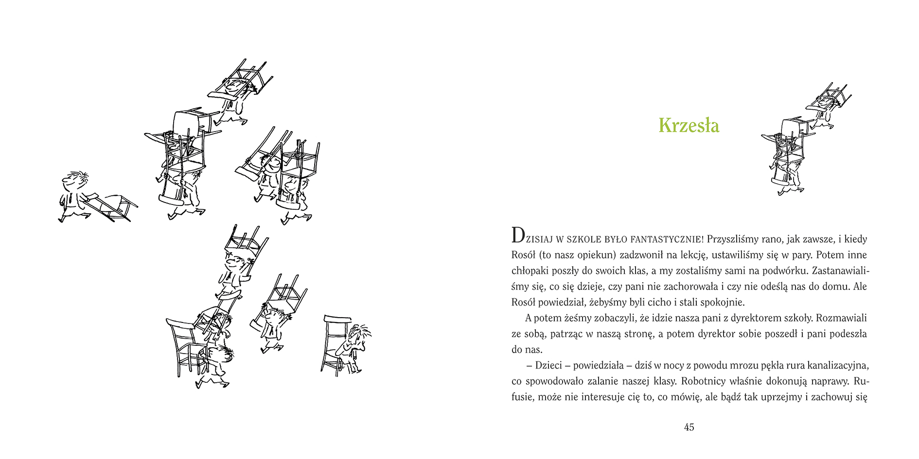 Wtedy Euzebiusz wyjaśnił, że odznaka jest po to, żeby rozpoznawać chłopaków z naszej paczki, i strasznie się przyda, kiedy zaatakujemy wrogów, więc wszyscy uznaliśmy, że to fajny pomysł".