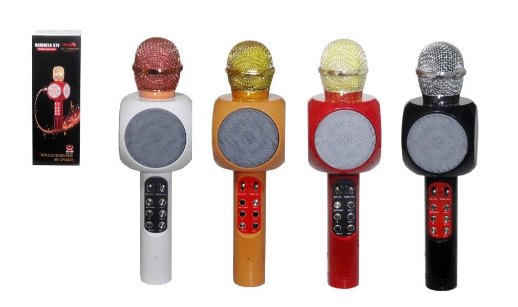Zabawka mikrofon bezprzewodowy. Wydaje dźwięki, śpiewa piosenki, świeci kolorowymi światełkami oraz nagrywa piosenki. Produkt zapakowany w kartonowe opakowanie. Podane wymiary są wymiarami mikrofonu. Produkt występuje w kilku wersjach kolorystycznych, wybierany losowo. Cena dotyczy jednej sztuki Zabawka bluetooth zasilana poprzez akumulator 18650/800mAh króry jest załączony do zabawki.