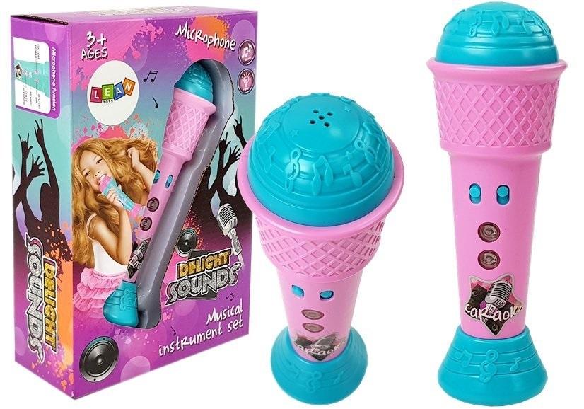 Mikrofon Dziecięcy Karaoke Różowy Doskonała okazja do rozwijania umiejętności wokalnych dziecka oraz oswojenia się z występowaniem na scenie. Zabawa w karaoke rozwinie w dziecku poczucie rytmu, zdolności wokalne, a może i zdolności taneczne, jeśli doda do występu jakiś układ. Idealny prezent dla przyszłej małej gwiazdy muzycznej. Mikrofon ma wysokość 19 cm, idealnie mieści się w ręce. Cały mikrofon jest w kolorze różowym, jedynie końce mają kolor niebieski. Na zabawce znajdują się dwa przyciski do przesuwania, jeden z nich uruchamia światła, mikrofon na zmianę świeci zielonym i niebieskim światłem wokół czerwonych diod. Drugi z przycisków odpowiada za włączanie i wyłączanie mikrofonu. Występy z takim mikrofonem będą dużo ciekawsze i dodadzą efektu. Można zaangażować do zabawy całą rodzinę lub zaprosić rówieśników na domowe karaoke. Wymiary mikrofonu: 19 cm x 6 cm x 6 cm Wymiary opakowania: 25 cm x 16, 5 cm x 7 cm Mikrofon zasilany jest dwoma sztukami baterii "AA" 1,5 V, które nie są dołączone do zestawu. Zestaw przeznaczony jest dla dzieci powyżej 3. roku życia. Zabawka posiada certyfikat CE i jest zgodna z normą EN 71. Zapakowana jest w pudełeczko, dzięki czemu nadaje się na prezent dla dziecka.