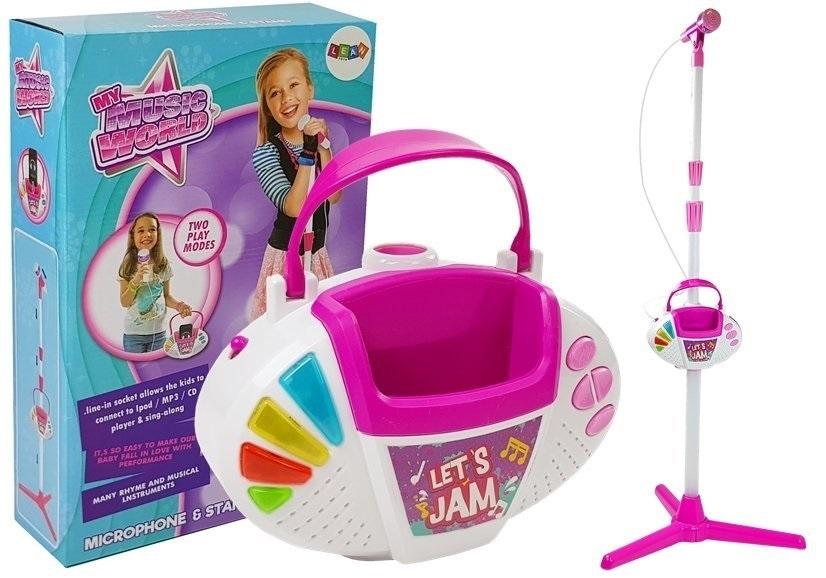 Zestaw posiada statyw, możemy zmienić jego długość i dostosować do wzrostu Twojego dziecka. Atutem zabawki jest to, że wystarczy połączyć go z urządzeniem zewnętrznym i odtworzyć podkład muzyczny. Po podłączeniu z innym urządzeniem odtwarza muzykę, pozwala słuchać ulubionych piosenek, jednocześnie można nakładać nasz głos!