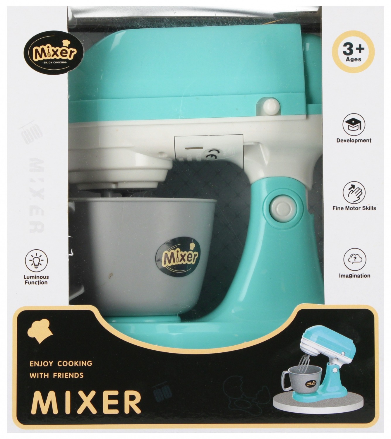 Zalety produktu mikser posiada efekty świetlne oraz dźwiękowe, wydaje dźwięki jak prawdziwy robot kuchenny, którym przygotowujesz pyszności w swojej kuchni, wystarczy ,że przekręcisz przycisk a mikser zacznie mieszać składniki przygotowane przez ciebie i wyrobi pyszne ciasto.