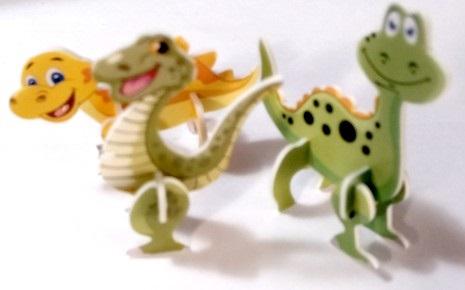 Mini dinozaury do składania miks 5 szt - wykonane z obustronnie nadrukowanej i sztancowanej pianki są prostymi puzzlami 3D, łatwymi do złożenia nawet bez żadnej instrukcji. opakowanie 5 różnych figurek