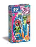 Kreatywne mini laboratorium do zabawy przy tworzeniu kolorowych długopisów za pomocą akcesoriów i dekoracji.