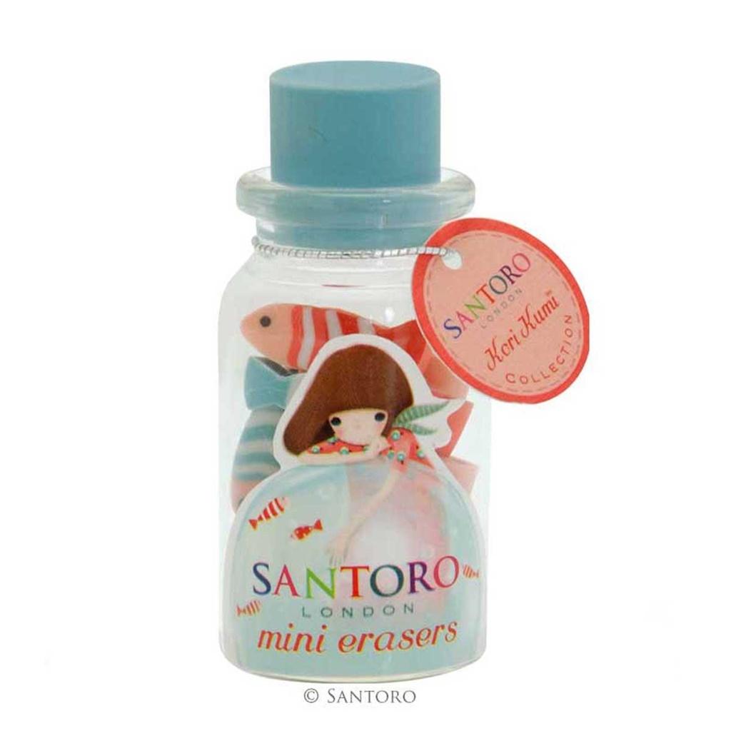 Małe gumki do ścierania w szklanej buteleczce. W kształcie różnokolorowych rybek. Wielkość butelki : 6x2 cm
