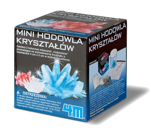 Stwórz swoją własna kolekcję kryształów poprzez eksperymentowanie ze wzrostem różnokolorowych składników. To niekończąca się zabawa. Każdy zestaw wyposażony jest w pojemnik do eksponowania i ochrony kryształu. Zawiera 3 kolorowe mieszanki ""hodowlane pozwalające na wyhodowanie kryształu w wybranym kolorze. Do wykonania projektu potrzebujesz 4 łyżeczek mieszanki :hodowlanej"". zapoznaj się z tabelka poniżej i postępuj zgonie z jej zaleceniami (mieszanie i wzrost kryształu), aby uzyskać preferowany kolor. Każda kolorowa kropka odpowiada 1 łyżeczce kolorowej mieszanki ""hodowlanej"".