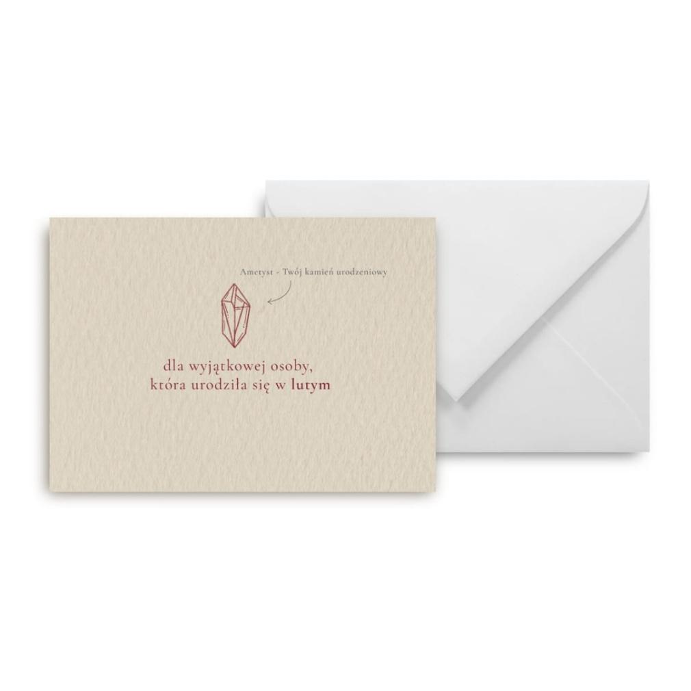 Delikatna kartka dla osoby urodzonej w lutym, ozdobiona symbolem ametystu. Ten wyjątkowy