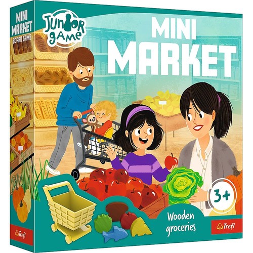 Witaj! Czas na zakupy! Mamy już przygotowaną listę i wózek, więc możemy zaczynać nasze zakupowe przygody. Kto jako pierwszy uzupełni swój koszyk o wszystkie produkty i dostarczy je do kasy? Mini Market to gra, która oferuje dwa warianty rozgrywki o różnym stopniu trudności, dostarczając dzieciom różnorodną i ekscytującą rozrywkę, a także mnóstwo uśmiechu. Gra rośnie razem z dzieckiem, pomagając w rozwoju logicznego myślenia, umiejętności spostrzegawczości, pamięci, koncentracji oraz zdolności manualnych. Ponadto uczy dzieci zdrowej rywalizacji. Zawartość: plansza sklepu 5 skrzynek na produkty drewniana kostka 5 list z zakupami potykacz + 2 podstawki 3 pionki - wózki zakupowe drewniane artykuły spożywcze (5 rodzajów po 6 sztuk - jabłko, ser, chleb, ryba,kapusta) instrukcja Liczba graczy 2-3 Wiek 3+