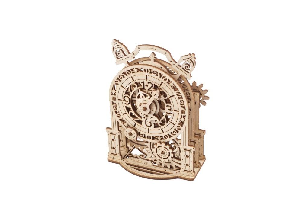 Zegar Vintage Alarm Clock jest uzupełnieniem i towarzyszem Steampunk Clock w katalogu Ugears. Oba posiadaja? azurowy styl dekoracyjnego rzezbienia i przekładni, ła?cza?c styl steampunkowy z lekkim odcieniem weneckiego uroku. Jeden i drugi model jest oceniany jako łatwy dla pocza?tkuja?cych lub młodszych konstruktorow. Oba zapewniaja? udekorują Twoją połkę lub stolik. Żadnego kleju. Po prostu wyciśnij elementy ze sklejki, połącz ze sobą. Potem wystarczy, że nasmarujesz zębatki woskiem i do przodu! Dzwoń dzwoneczku.