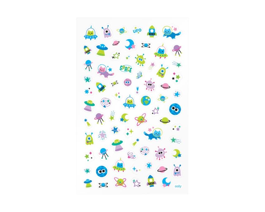 Udekoruj swoje zeszyty, notatniki, piórnik lub telefon komórkowy naklejkami z sympatycznymi kosmitami, szczęśliwymi planetami i innymi pozaziemskimi przyjaciółmi. Kosmiczne naklejki Itsy Bitsy to zestaw przezroczystych naklejek, które zapraszają Cię do kolorowej, międzygalaktycznej przygody! Połącz je z innymi motywami naklejek Itsy Bitsy od OOLY i stwórz swój własny, fantastyczny świat!