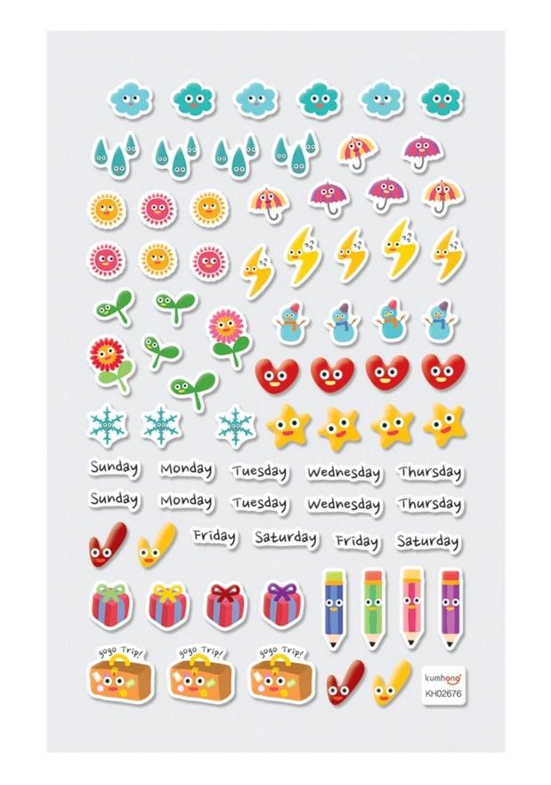 Jeśli chcesz, aby twój dzień był zorganizowany w wesoły sposób, baw się z naklejkami ""Happy Planner Itsy Bitsy"". Ten arkusz z naklejkami Happy Planner ma 77 małych naklejek. Są tam mini nalepki z nazwami każdego dnia tygodnia, różne rodzaje pogody, pory roku i wiele innych, więc jest mnóstwo zabawnych naklejek do wyboru, aby zaplanować nadchodzące dni. Odpowiedni dla dzieci w wieku od 3 lat.