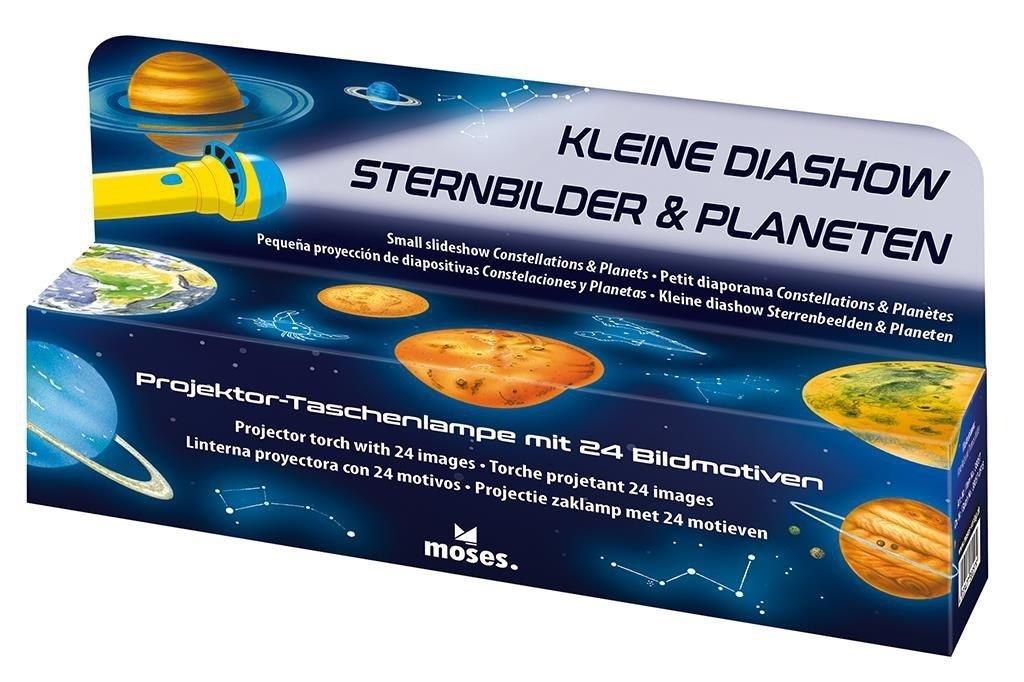 Latarka, Mini Projektor Gwiazd i Planet, Kosmos. Wspaniały prezent dla fanów Kosmosu, niezwykły pokaz planet i gwiazd Układu Słonecznego, który możesz przenieść do pokoju dziecinnego za pomocą latarki - projektora. W tym celu należy włączyć latarkę, wsunąć kółeczko z przeźroczami w szczelinę powstałą po odciągnięciu ruchomej części i skierować na ścianę w zaciemnionym pokoju. Niezwykły pokaz. Wyświetla 24 obrazy (3 kółeczka z przeźroczami). 8 Planet i 16 Konstelacji Układu Słonecznego. Idealna widoczność. Przeznaczony dla dzieci