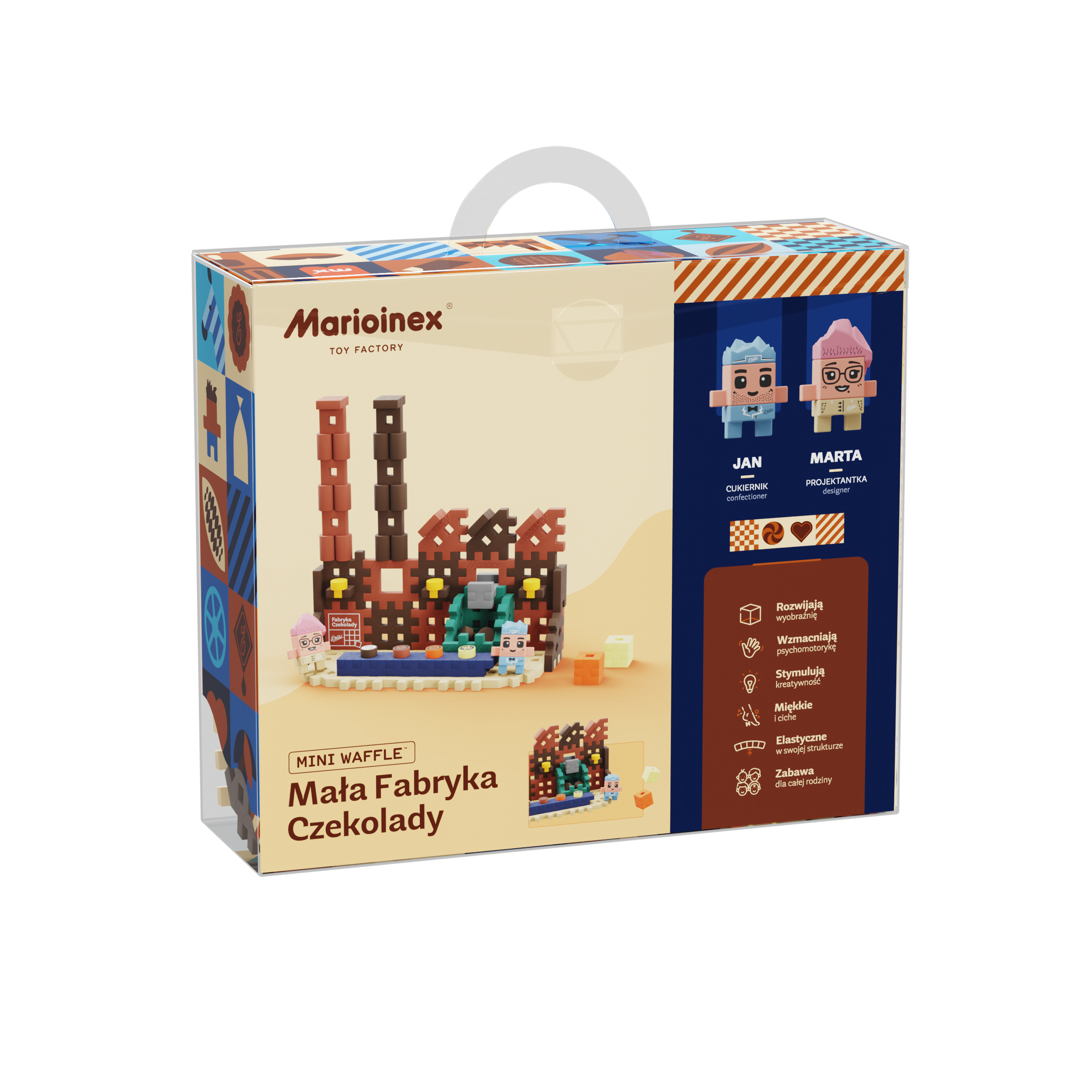 Seria zestawów powstała we współpracy z marką Wedel. Poznaj słodki świat najsłynniejszej fabryki czekolady poprzez zabawę wyjatkowymi licencyjnymi zestawami klocków Mini Waffle.