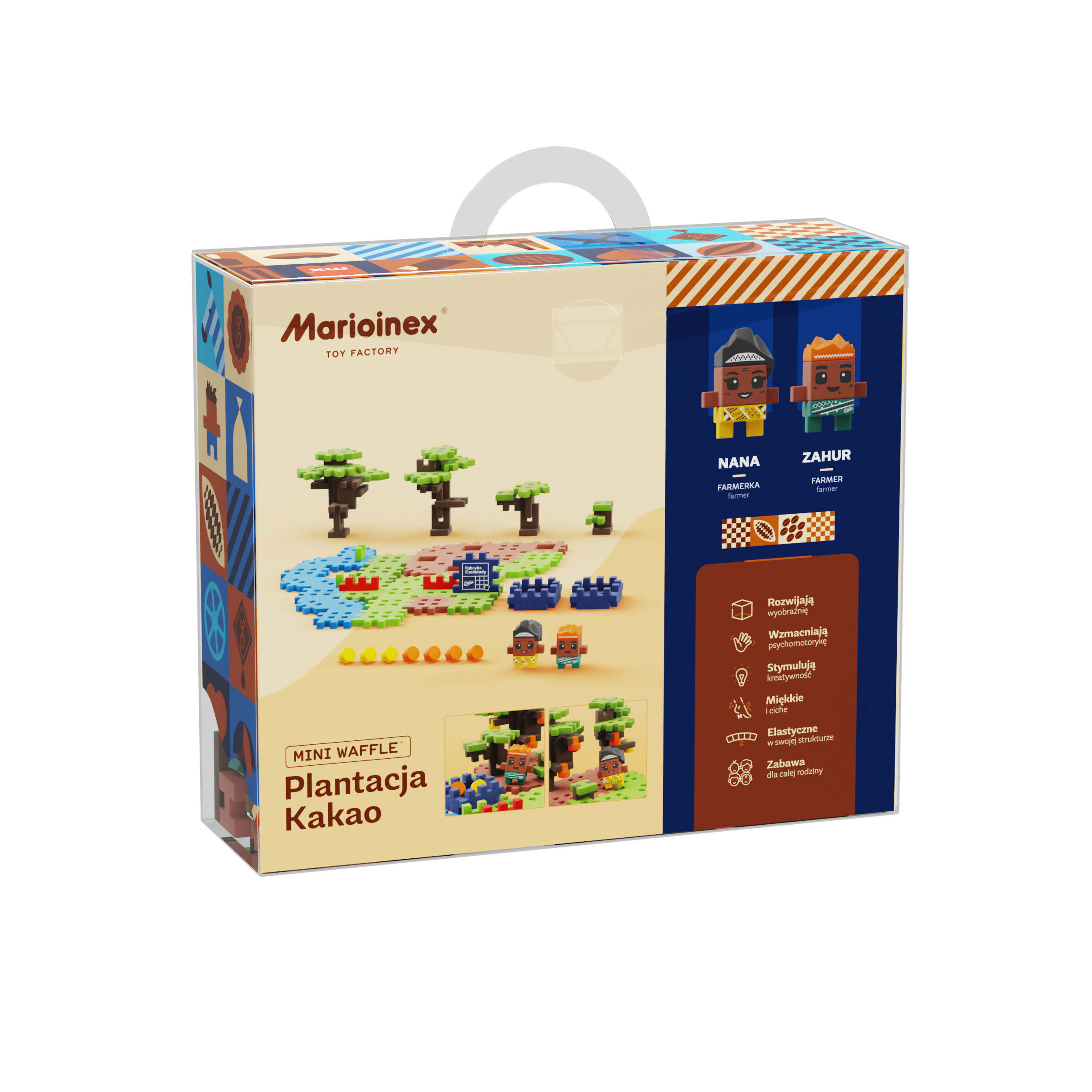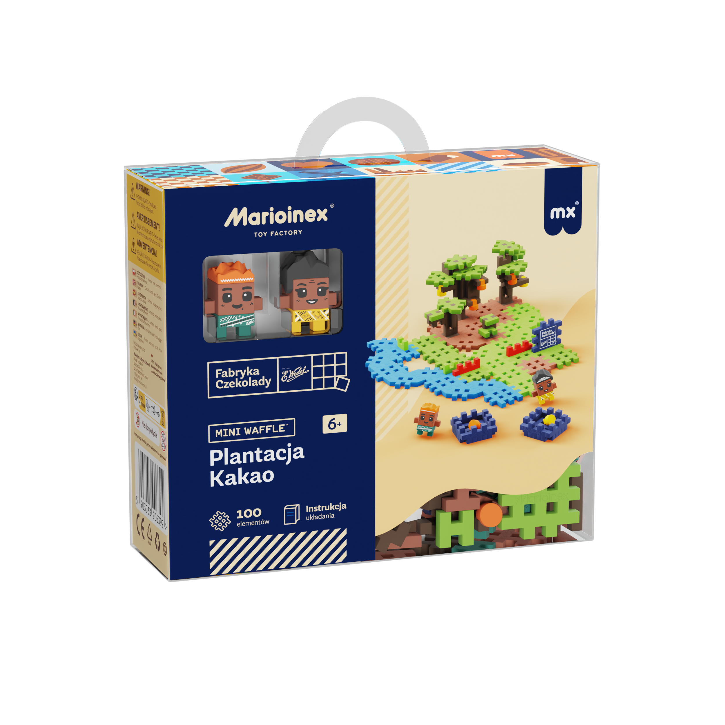 Zestaw Mini Waffle Plantacja Kakao to świetny sposób na wspólną zabawę i rozwijanie kreatywności oraz wyobraźni Twojego dziecka. Wspólnie dowiecie się, jak wygląda pierwszy etap produkcji czekolady, czyli zbiory ziaren kakaowca. W tym celu czeka Was niezapomniana podróż na plantację!