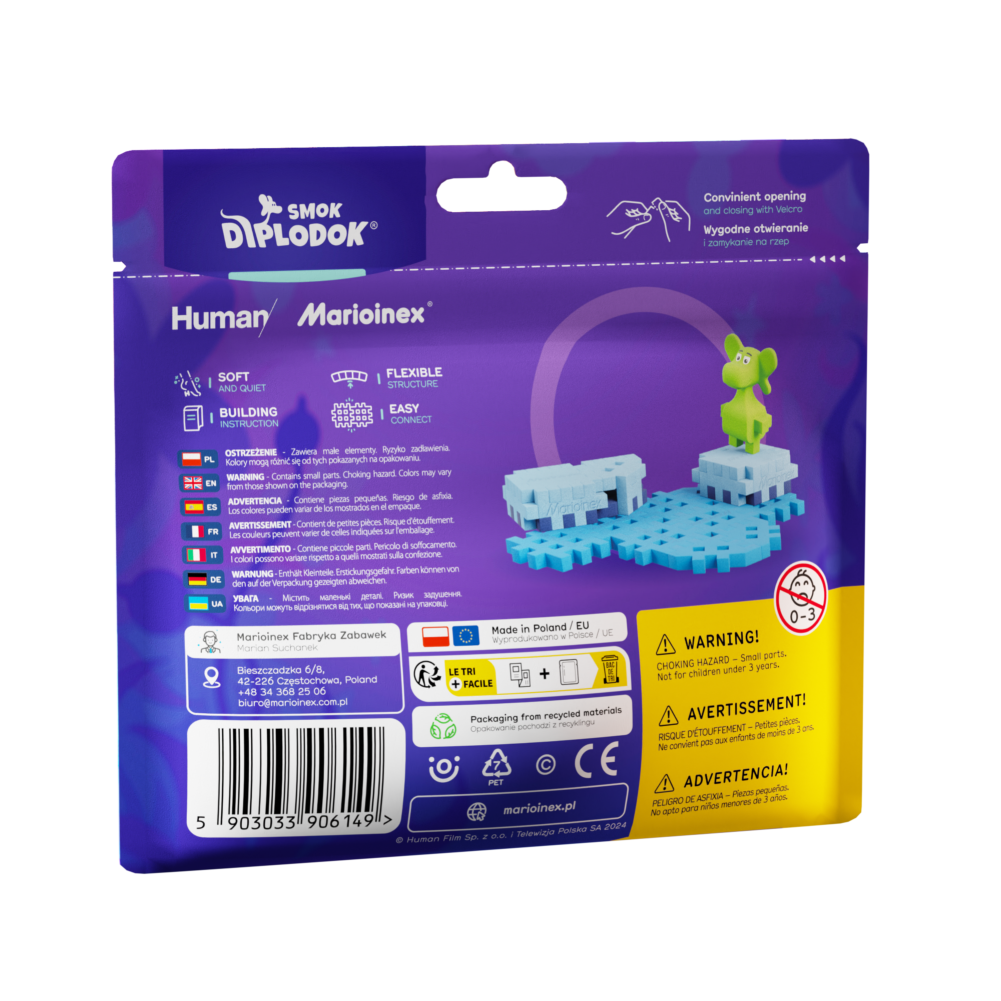 Zestaw Diplodok i Arktyka z serii Mini Waffle to 25 elementów, z których stworzysz fragment lodowej krainy, oraz figurkę przezabawnego smoka Diplodoka. To urocze stworzenie bez przerwy chce przeżywać przygody i odkrywać nowe kawałki świata i chce to robić właśnie z Tobą!