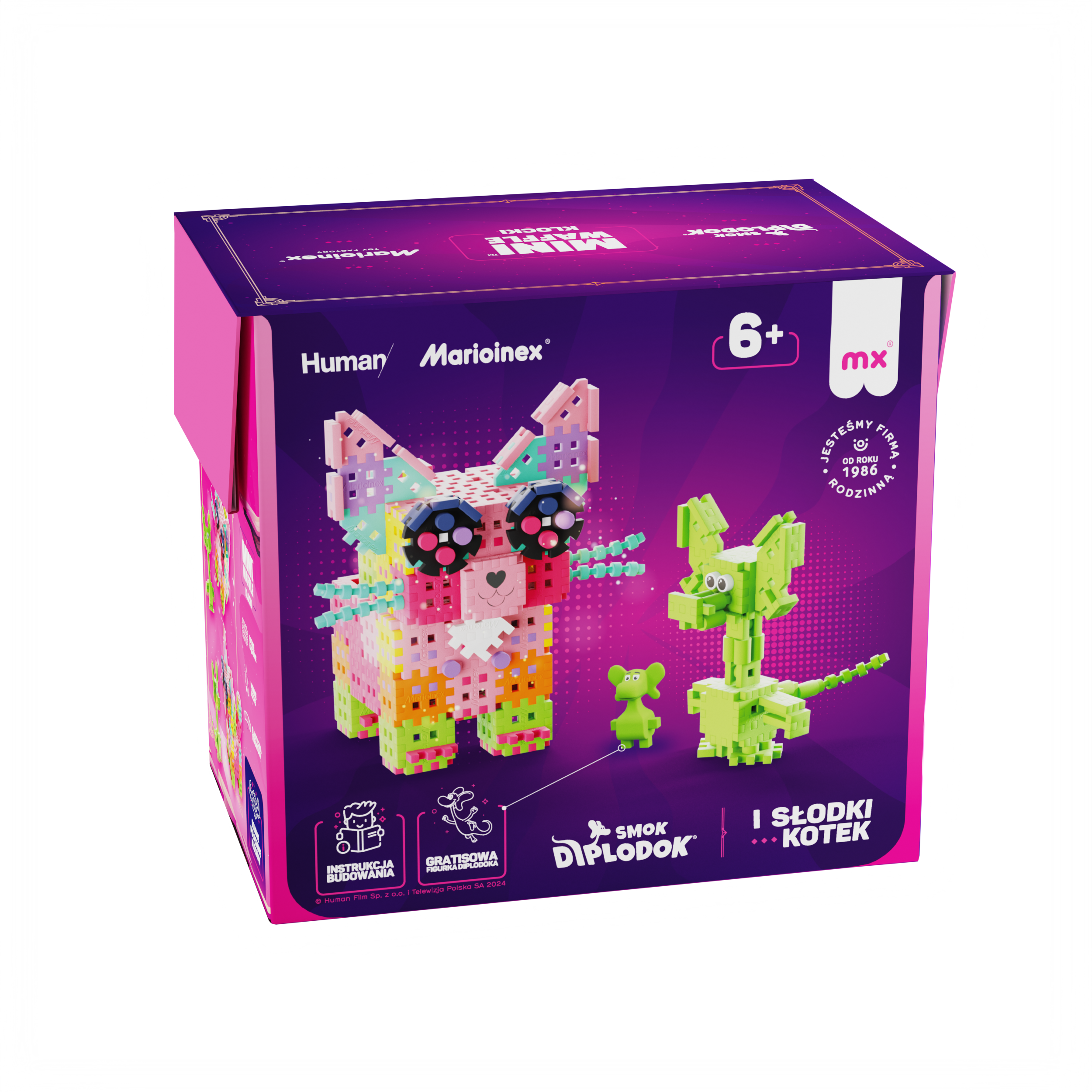 Diplodok i Kot to zestaw z serii Mini Waffle, który zabierze Cię w świat niesamowitych przygód Smoka Diplodoka. To xx elementów, z których zbudujesz wielkiego, kolorowego kota i figurka Smoka Diplodoka, który wciągnie Ciebie i Twoją pociechę do świata, w którym wszystko jest możliwe. Łącz zestawy z serii Smok Diplodok i stwórz magiczną krainę pełną niezwykłych historii i najdziwniejszych postaci!