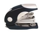 Mini zszywacz w obudowie z tworzywa sztucznego, części mechaniczne metalowe. Zszywanie zamknięte. Specjalnie skonstruowana dźwignia redukuje siłę nacisku do 50%. Dostosowany do zszywek o rozmiarach: 24/6-26/6. Zszywa do 20 kartek. Dodatkowo wyposażony w metalowy rozszywacz. Głębokość wsuwania kartek: 40 mm. Pojemność magazynka: 50 zszywek. Opakowanie: blister.