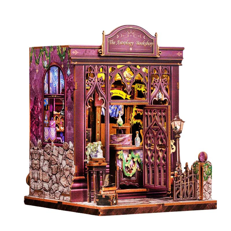 Model składający się z gotowych, ciętych laserowo, malowanych elementów, umieszczonych na planszach - składanie domku polega na umieszczeniu elementów drewnianych w otworach konstrukcji domku, wg kroków wskazanych w instrukcji.