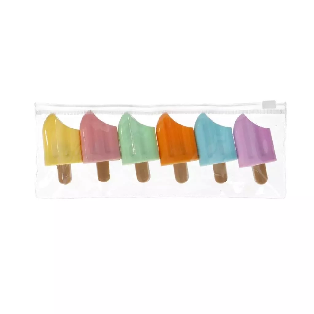 Zestaw sześciu zakreślaczy w różnych kolorach w kształcie lodów.
