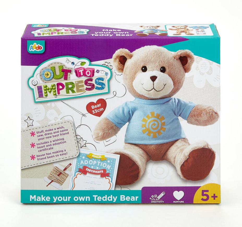 Stwórz swoją własną przytulankę – misia - z tym zestawem. Wypełnij go puchem, ubierz, zszyj i nadaj mu imię! Uzupełnij certyfikat adopcji, żeby nie zapomnieć o jego urodzinach. Zawartość: • miś, • certyfikat adopcji, • T-shirt misia, • wypełnienie misia, • plastikowa igła z nitką, • serduszko do wpisania życzenia • instrukcja Zestaw dostępny w dwóch wersjach kolorystycznych: różowej i niebieskiej. Wymiary opakowania: 25 x 30 x 7,5 cm Produkt przeznaczony dla dzieci powyżej 5. roku życia