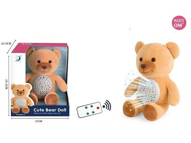 Miś pluszowy z projektorem gwiazd i muzyczką na pilota. zmieniane 3 kolory świecenia, różne muzyczki + opcja szumu morza.