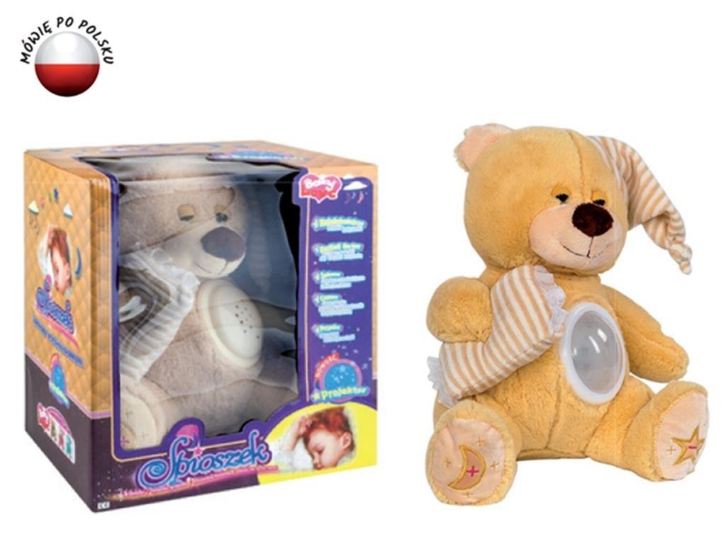 Zabawka ma uspakajający wpływ na małe dzieci. Sprawdza się doskonale jako pomoc w usypianiu. Łagodnym, kobiecym głosem śpiewa 4 polskie kołysanki. Przytulanka ma wbudowaną lampkę z projektorem.