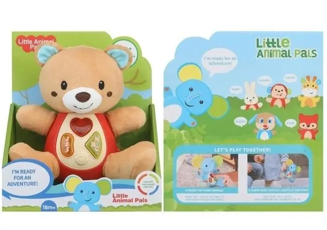 Poznaj interaktywnego misia "Little Animal Pals", który rozświetli świat każdego malucha! Ten uroczy pluszak, przeznaczony dla dzieci powyżej 18. miesiąca życia, to nie tylko mięciutki przyjaciel do przytulania, ale także edukacyjna zabawka pełna niespodzianek. Miś wyposażony jest w łatwe do naciśnięcia przyciski, które aktywują wesołe dźwięki i piosenki, rozwijając zmysły słuchu i wzroku dziecka. Zapewnia godziny radosnej zabawy, a także wspiera rozwój poznawczy poprzez interakcję. "Little Animal Pals" to idealny towarzysz każdej przygody - zarówno w domu, jak i w podróży. Jego kompaktowy rozmiar pozwala zabrać go wszędzie, a wytrzymałe materiały gwarantują długotrwałe użytkowanie. Przygotuj się na niezapomniane chwile uśmiechu i odkrywania z tym wyjątkowym misiem!