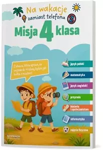 Idealny towarzysz wakacji dla uczniów po klasie 3 "Misja 4 klasa" to publikacja, która delikatnie i z humorem przeprowadzi dziecko przez czas wakacji - tak, by przygotować je do wejścia w nowy etap edukacyjny, czyli klasę 4. Bez stresu, bez nacisku, za to z masą dobrej zabawy i przygód! Odpoczywaj, czytaj, rozwiązuj "Misja 4 klasa" to coś więcej niż zwykły zeszyt z zadaniami - to angażująca podróż pełna śmiechu, łamigłówek i lekkiej nauki. Świetnie sprawdzi się w plecaku na wyjazd, w samochodzie, na kocu w ogródku czy w deszczowe popołudnie w domu. To doskonały sposób na ciekawe spędzenie czasu bez telefonu, tabletu czy komputera - z ołówkiem w ręku, uśmiechem na twarzy i głową pełną pomysłów. Co znajdziesz w środku? Publikacja składa się z 8 bloków tematycznych, a każdy z nich to mała wakacyjna misja, która zawiera: historyjkę - zabawny tekst, który wciąga, rozśmiesza i wprowadza w temat; zadania z różnych przedmiotów - wszystkie w formie zabawy, quizu, zagadki, gry, wyzwania i bardziej tradycyjnych zadań na wesoło, a wśród nich zadania z: języka polskiego, matematyki, języka angielskiego, przyrody, historii i społeczeństwa, a także wprowadzające do informatyki oraz ćwiczenia w ramach wychowania fizycznego; misję - ta karta dodatkowa to coś zupełnie innego: projekt do wykonania, rysunek, pocztówka, zabawa obserwacyjna czy ćwiczenie na koncentrację lub relaksacyjne; odpowiedzi - do wybranych zadań, dzięki czemu dziecko może samodzielnie sprawdzić, jak mu poszło.