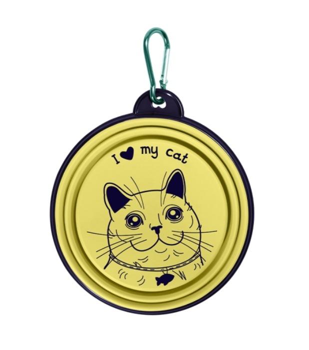 Ta stylowa miska dla miłośnika zwierząt, dla kociarzy I ? my cat urzeka swoją stylową kolorystyką i modnym designem. Żółty odcień nadaje jej wyrafinowany charakter. Unikalny napis ""I ? my cat"" nadrukowany na misce dodaje osobistego akcentu, a wizerunek ulubionego Pupila rozczuli serce każdego miłośnika zwierząt. Dzięki metalowemu karabińczykowi, możesz przymocować miskę do smyczy, plecaka, aby zawsze mieć ją przy sobie. Specyfikacja: Miska na wodę i karmę z silikonu dla miłośnika kotów Łatwa do złożenia, zajmująca mało miejsca, idealna w podróży Elastyczna i giętka Wysoka jakość: odpowiednia dla żywności Możliwe mycie w zmywarce Materiał: 100% silikon Średnica: 127 mm Kolor: żółty Nadruk jest wykonany bardzo trwałą metodą. Zalety produktu: Niepowtarzalny design - miska powstała według autorskiej kolekcji, w której dostępne są również kubki, breloki, poduszki i adresówki z wizerunkiem Pupila. Dzięki możliwości składania zajmuje bardzo mało miejsca i przy tym jest łatwa w transporcie. Wykonana z giętkiego i elastycznego materiału, dzięki czemu łatwo mieści się w każdym bagażu podróżnym. Miska na prezent dla miłośnika zwierząt, dla kociarzy I ? my cat będzie doskonałym wyborem na prezent z okazji urodzin, imienin, Świąt kub jako prezent uniwersalny dla wszystkich miłośników zwierząt. Sprawdzi się jako praktyczny i stylowy element codziennego użytku. Wyróżniająca się eleganckim designem i personalizacją, miska prezentowa z Wizerunkiem Pupila - to idealny upominek, który z pewnością zostanie doceniony.