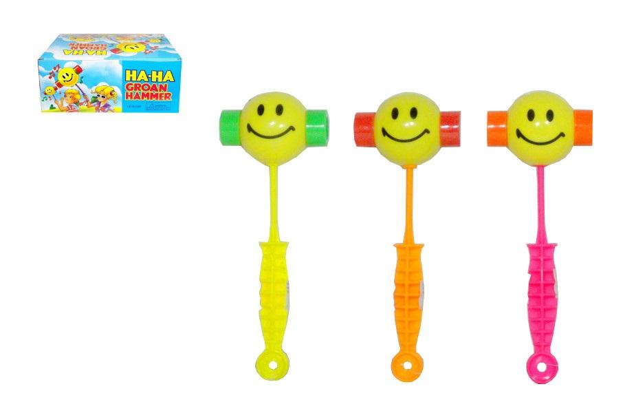 Zabawka młotek piszczący z uśmiechnietą buźką. #&Produkt występuje w kilku wersjach kolorystycznych, wybierany losowo. Cena dotyczy jednej sztuki.#&Produkt dla dzieci od 3 lat.