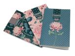 Zestaw 3 ozdobny zeszytów, w formacie A6. Całość zapakowana wraz z ozdobną wstążką. Wyprodukowane w Portugalii.